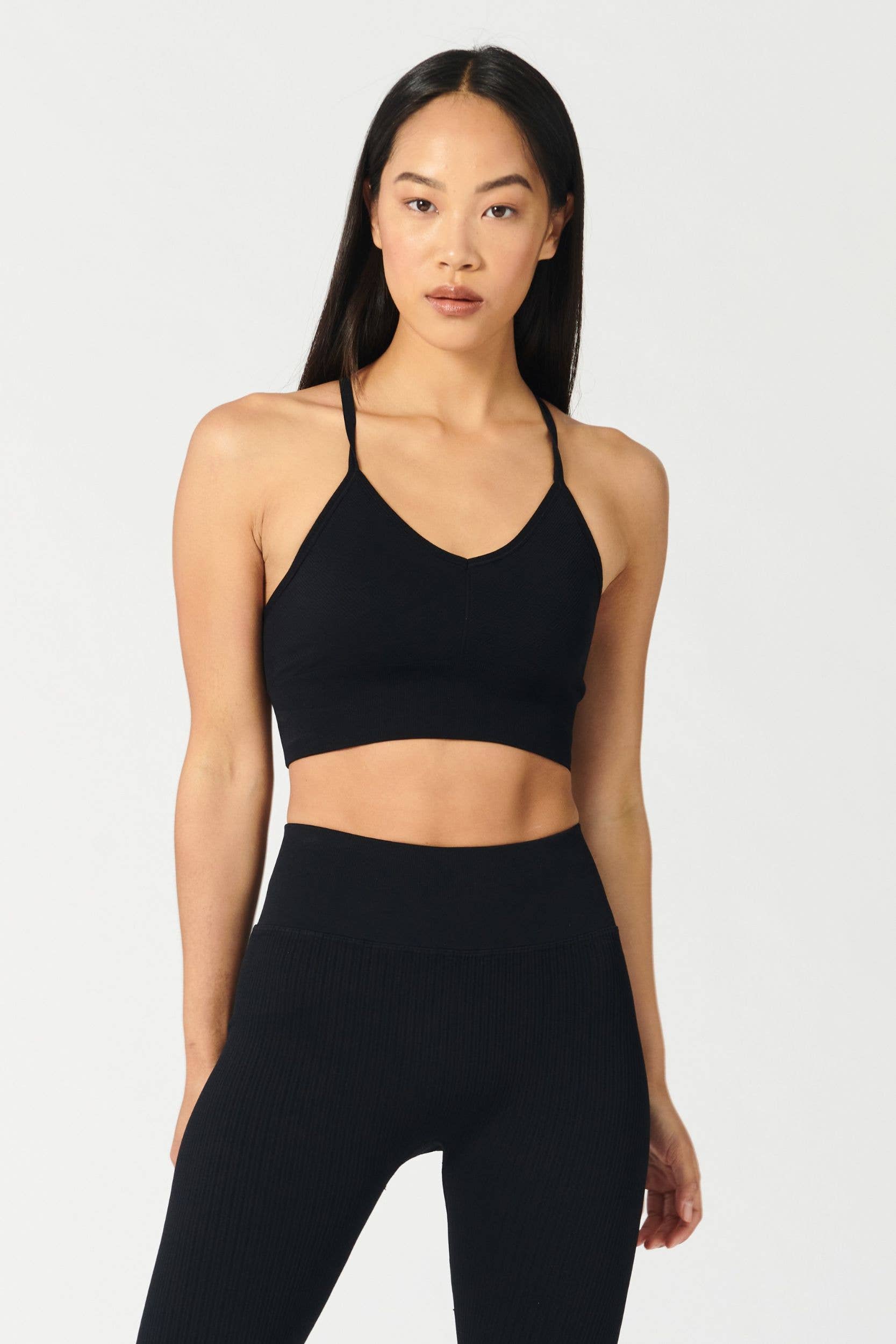 Adding on our ever popular One By One capsule the One By One Bra is sure to be your new favorite. Moto inspired jacquard creates a comfortable hold with a v-neckline perfect to wear with any top.