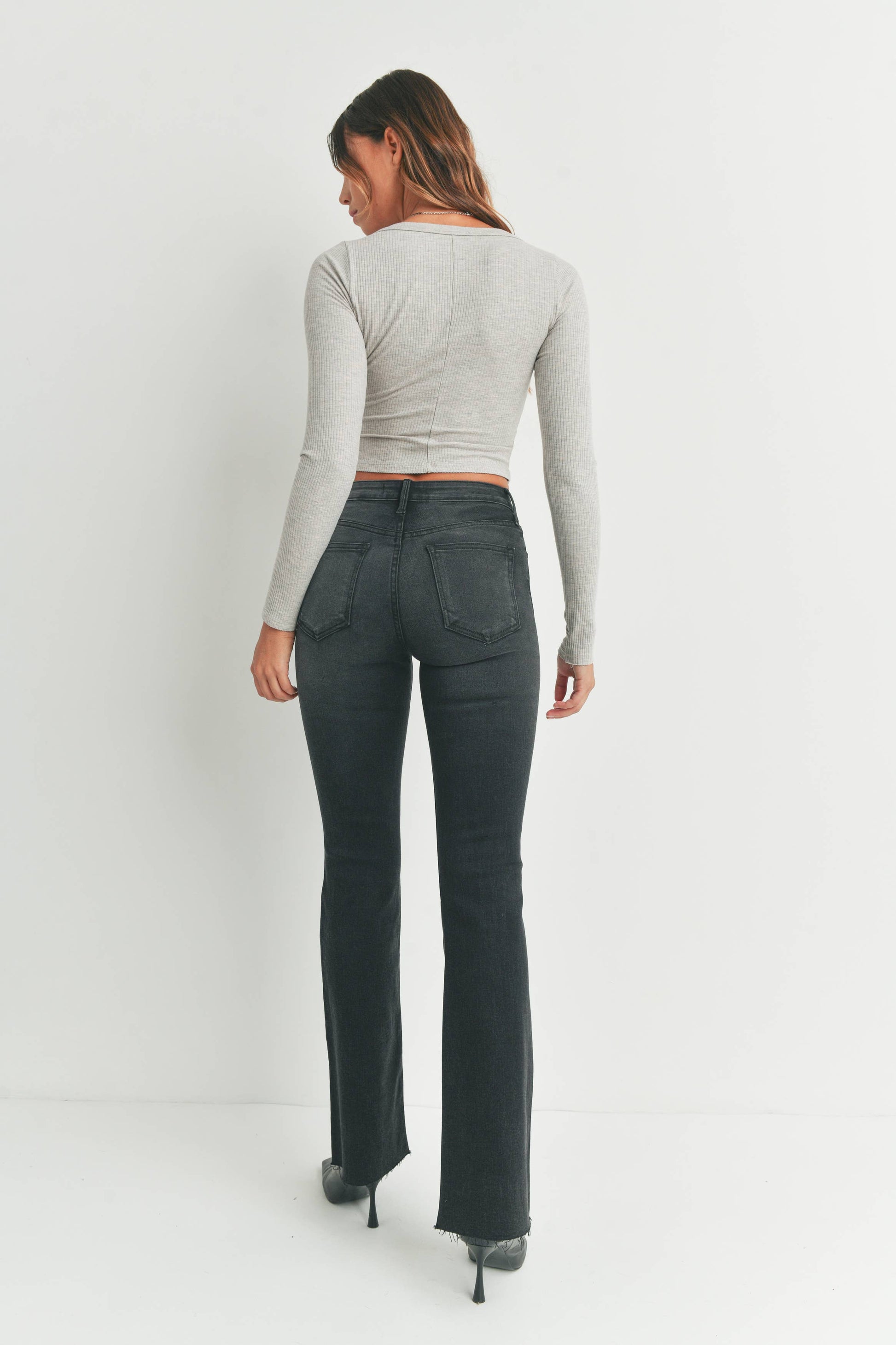 Just Black Denim - High Rise Scissor Cut Flare Wash Black BP333J