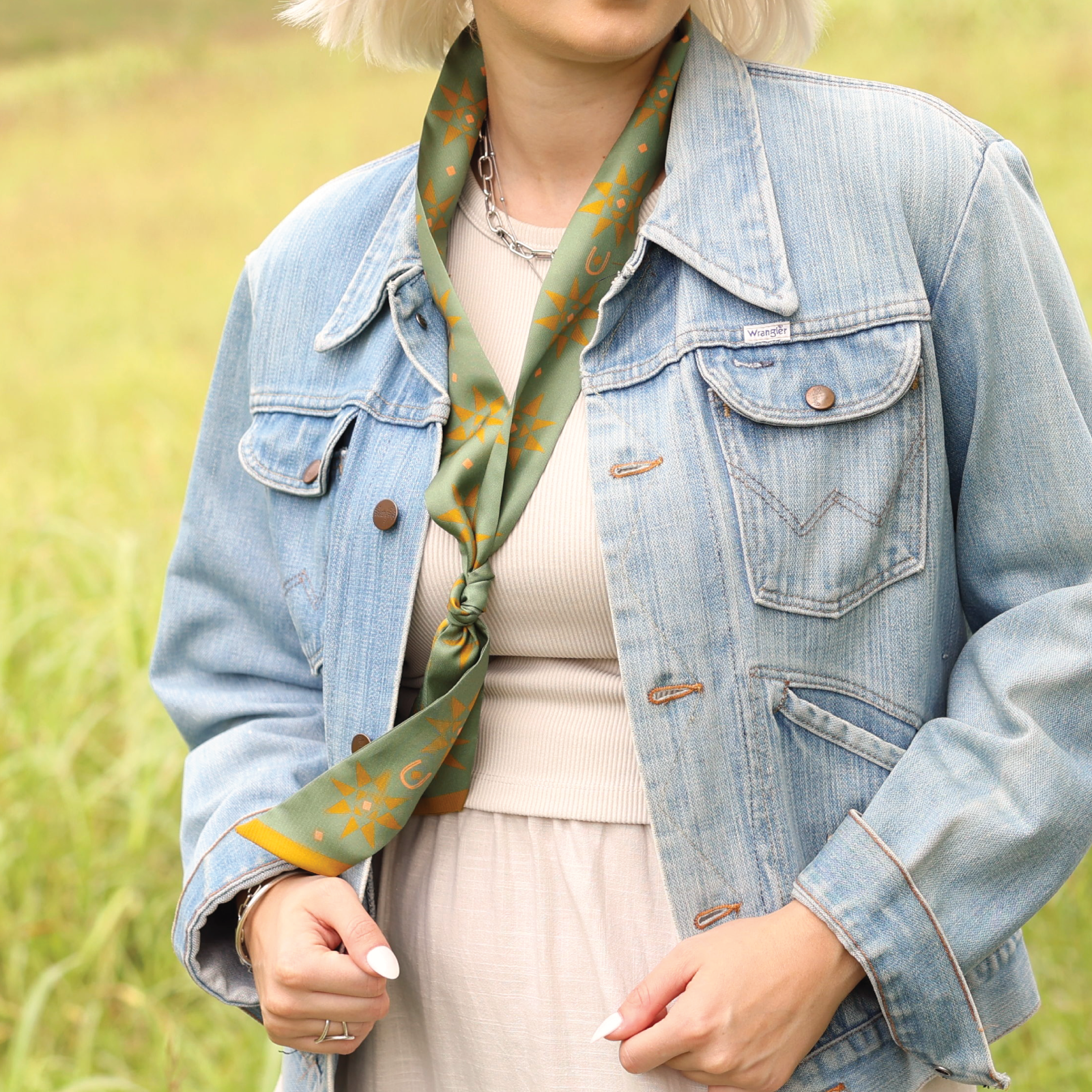This 100% silk scarf is gift-ready! Featuring a vibrant sage and copper print, this scarf is intricately made and perfect for celebrating all of life’s occasions!