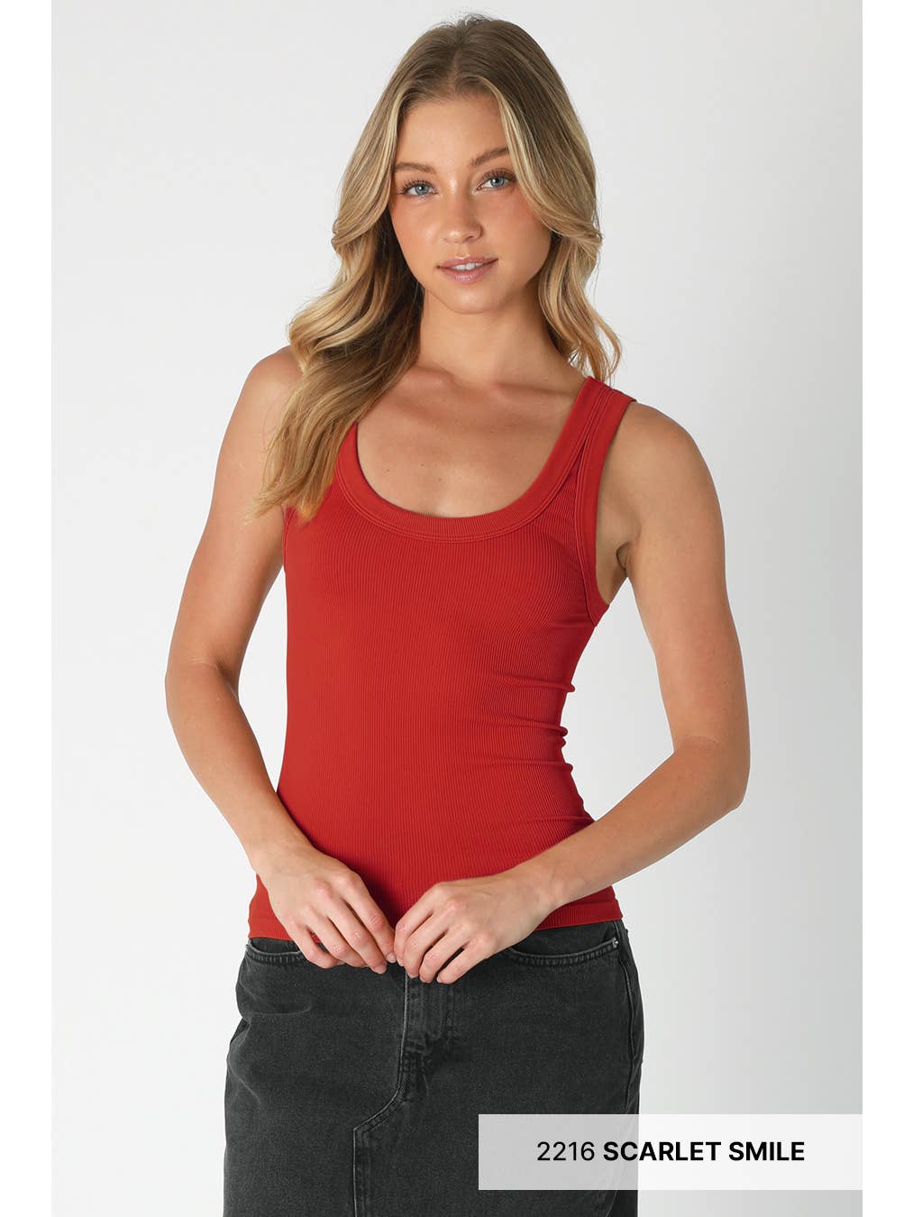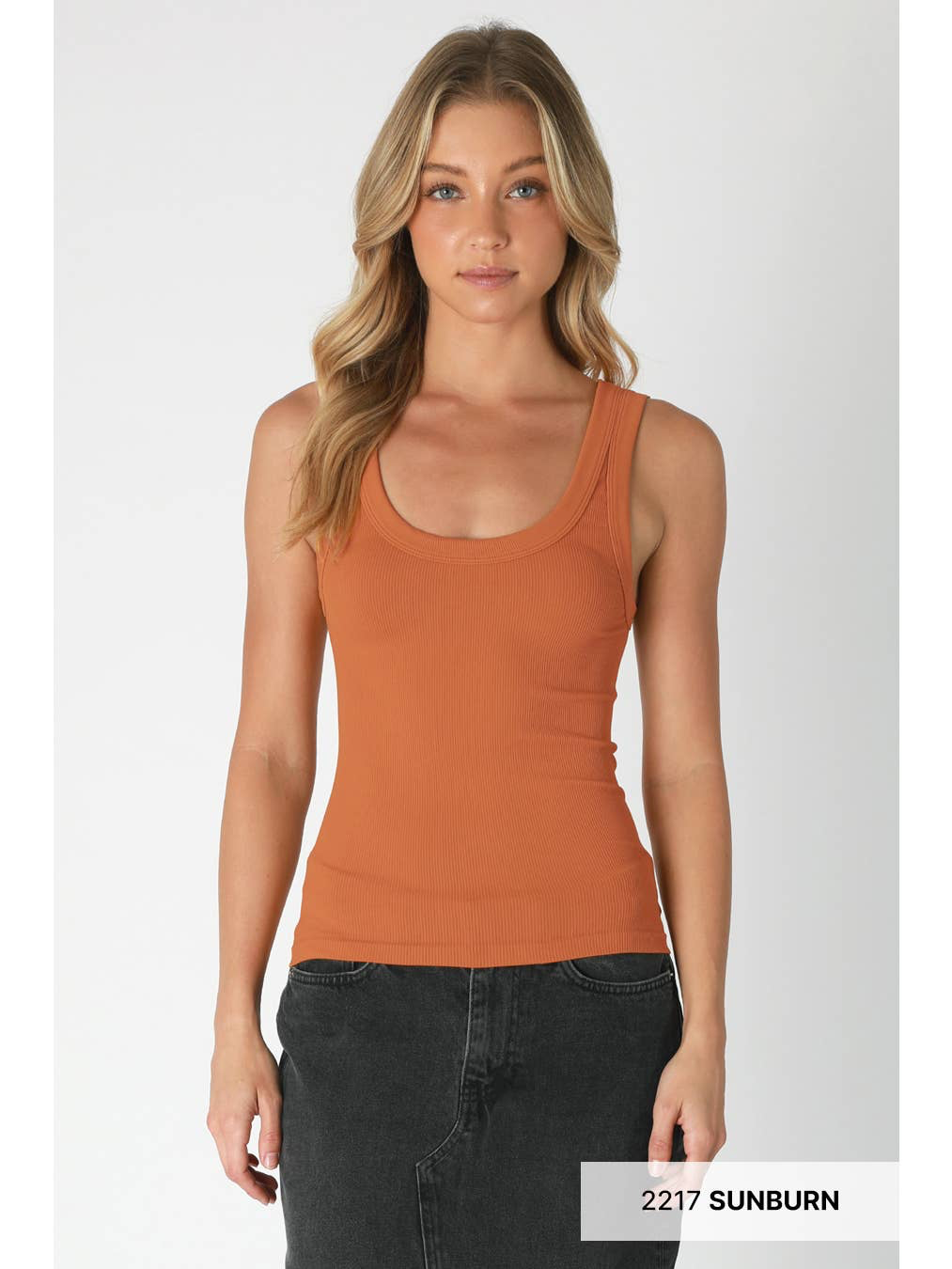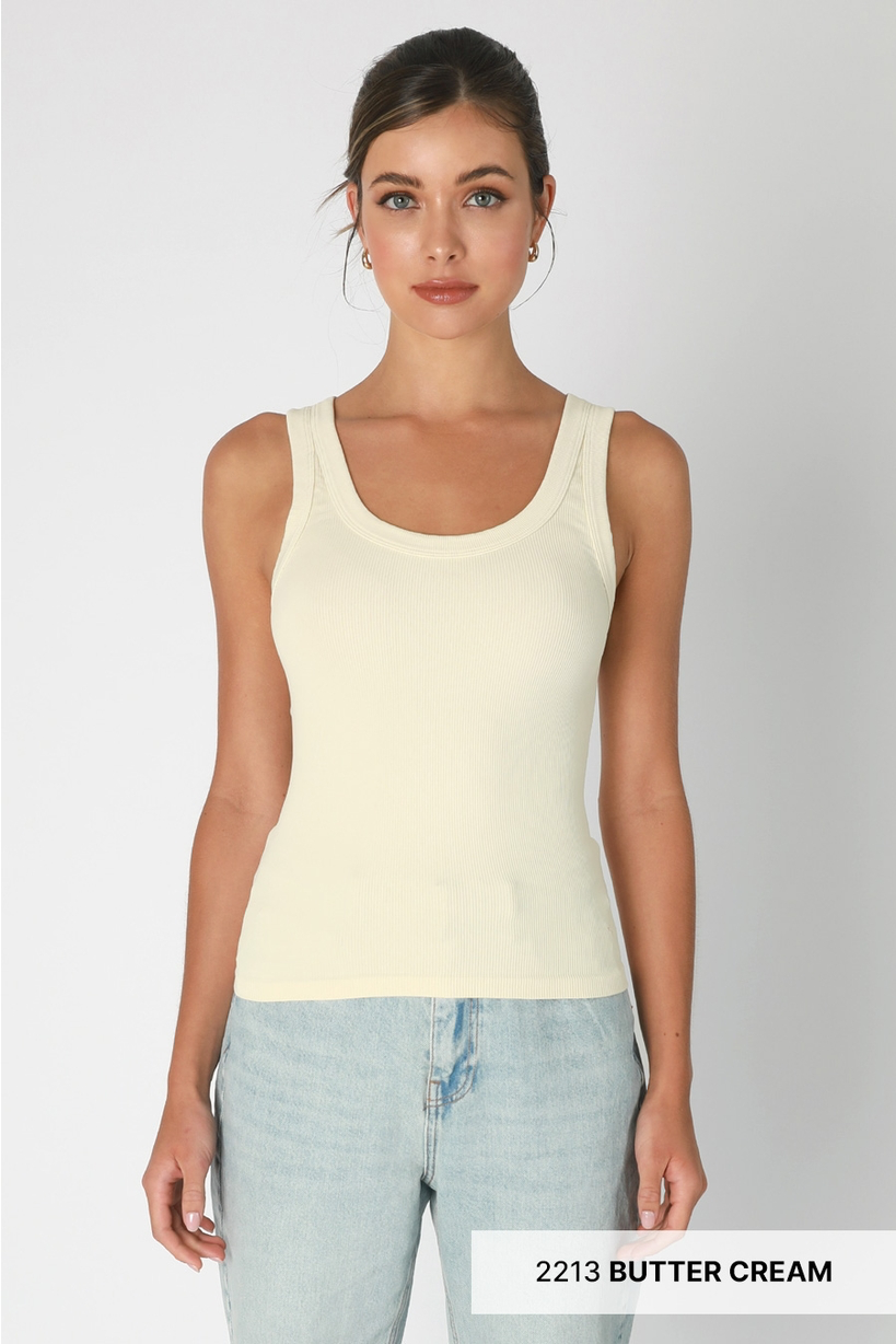 A perfect ribbed u-neck tank top that can reverse to a high neck.
